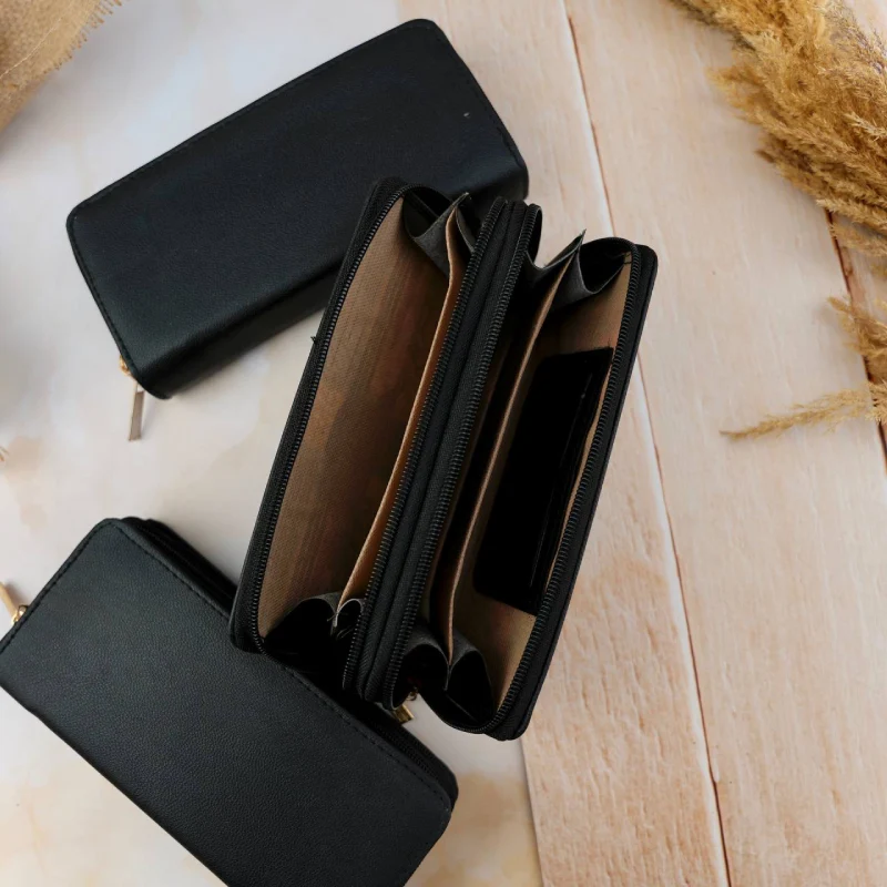 خانه زنانه کیف پول سایز بزرگ کیف پول دو زیپ مشکی 10-279