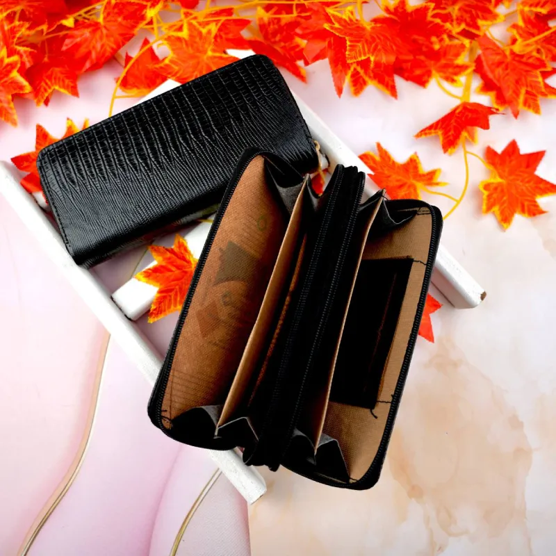 کیف پول دو زیپ لیزارد مشکی 18-279