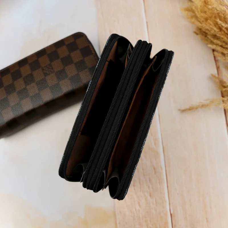 خانه زنانه کیف پول سایز بزرگ کیف پول دو زیپ lv چهارخونه 5-279